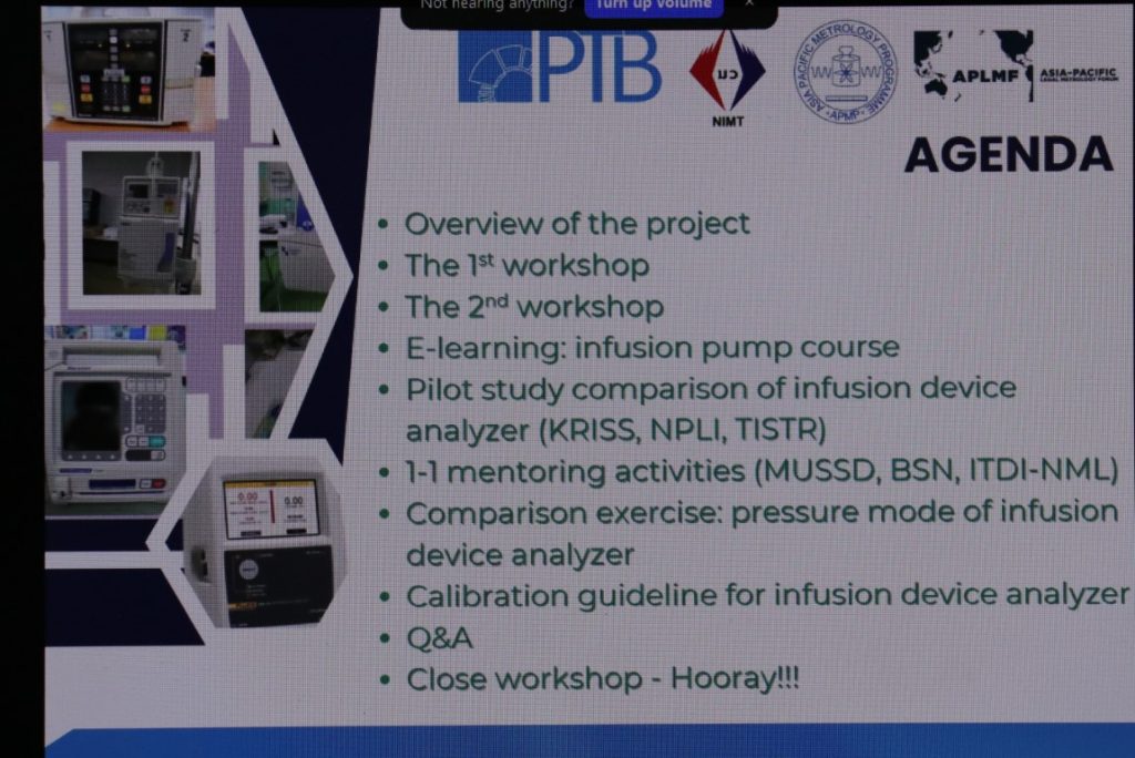 On 26 March 2025, NIMT organized the online workshop on “Calibration capability for insulation/syringe pump analyzers” to summarize the overall results of the collaborative project – MEDEA 3.0: Metrology – Enabling Developing Economies in Asia. The participants consisted of representatives from NMIs in DEC and APMP countries.