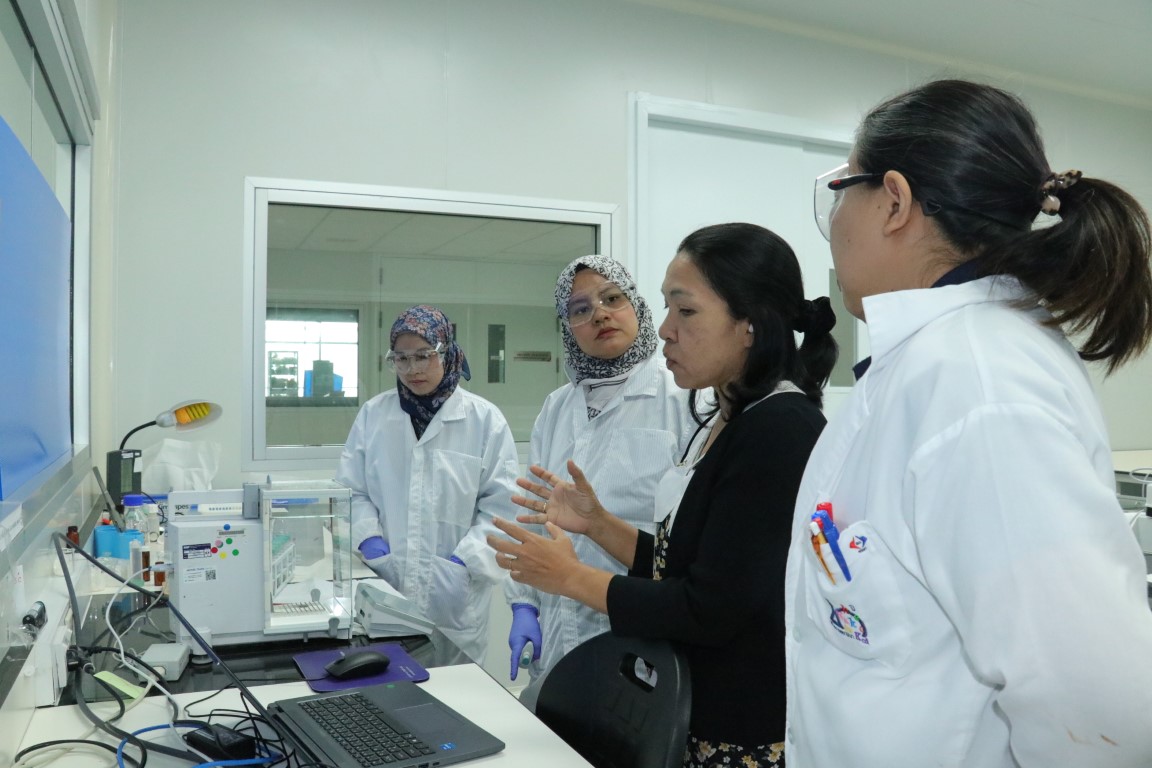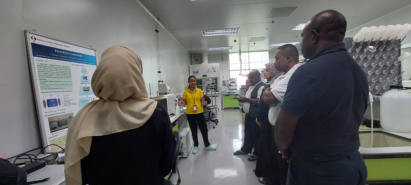 Pol.Lt.Gen. Pornchai Suteerakune, Director of NIMT, together with Dr. Kittiya Shearman, Head of the Chemical Metrology and Biometry Department, Dr. Cheerapa Boonyakong, Group Leader of Organic Analysis, and Dr. Jintana Nammoonnoy, metrologist from the Chemical Metrology and Biometry Department, warmly welcomed Ms. Haznita Rose Bahari and Ms. Siti Nor Fadhilah Sulaiman, chemists from the Department of Chemistry Malaysia (KIMIA) for the training on Isotope Dilution Mass Spectrometry (IDMS), which was held from 19 to 30 May 2025 at NIMT.