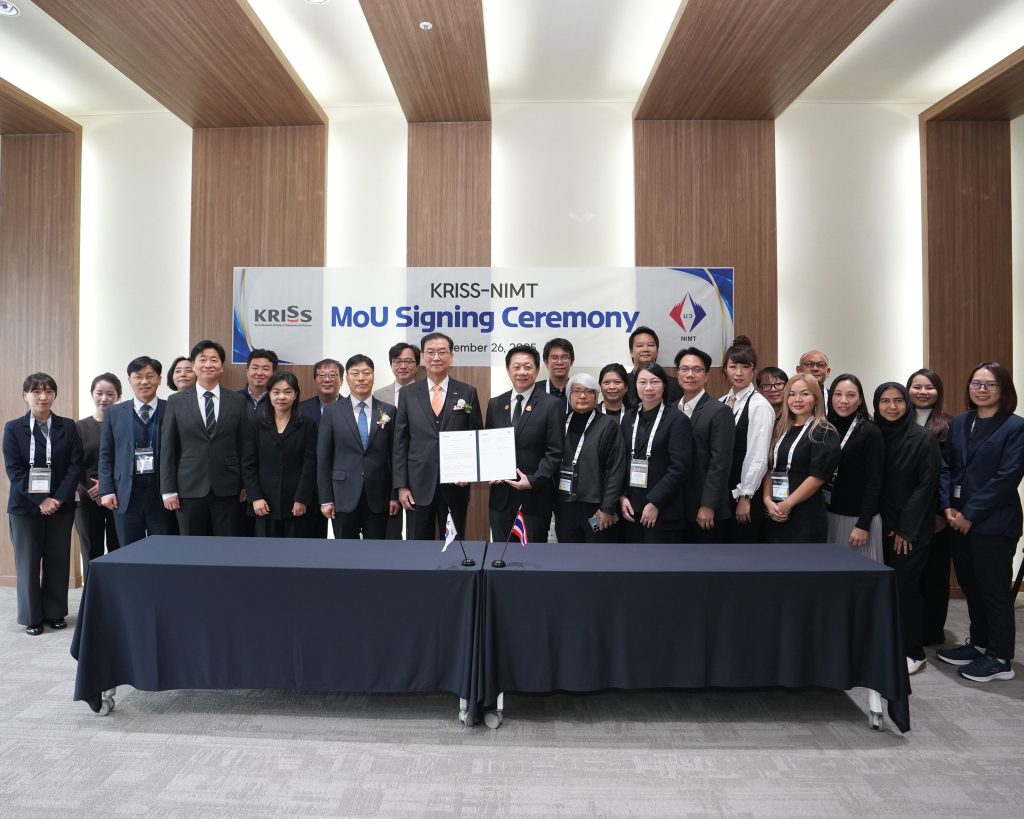On 26 November 2025, the National Institute of Metrology (Thailand) (NIMT) and the Korea Research Institute of Standards and Science (KRISS) reached another important milestone in their long-standing partnership by signing a renewed Memorandum of Understanding (MoU).