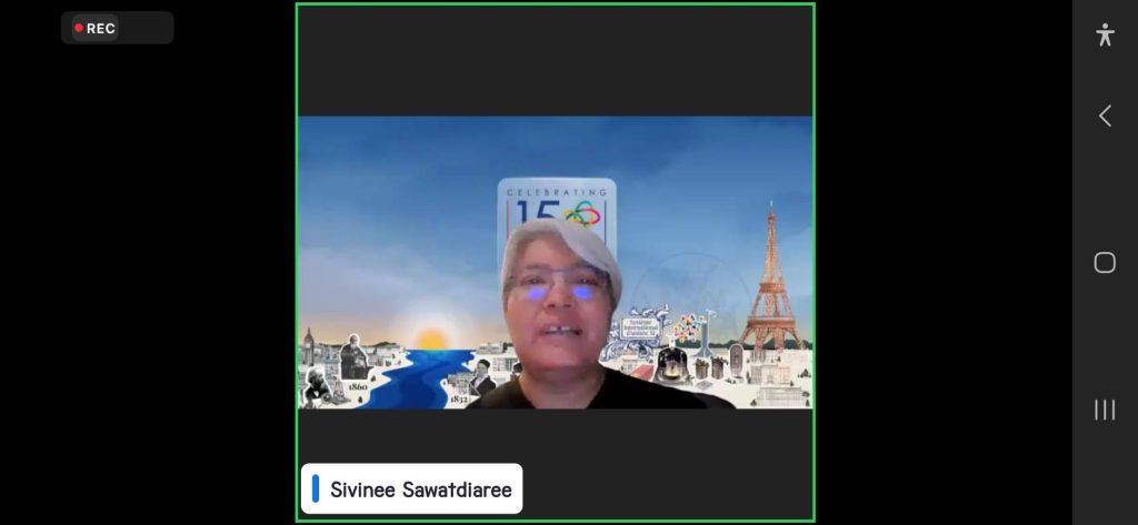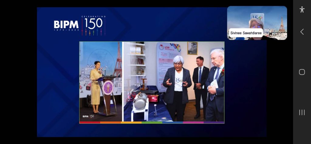 Dr. Sivinee Sawatdiaree, representing NIMT, delivered a short national contribution during a special online event marking the conclusion of the 150th anniversary of the Metre Convention (BIPM150), organized by the International Bureau of Weights and Measures (BIPM).