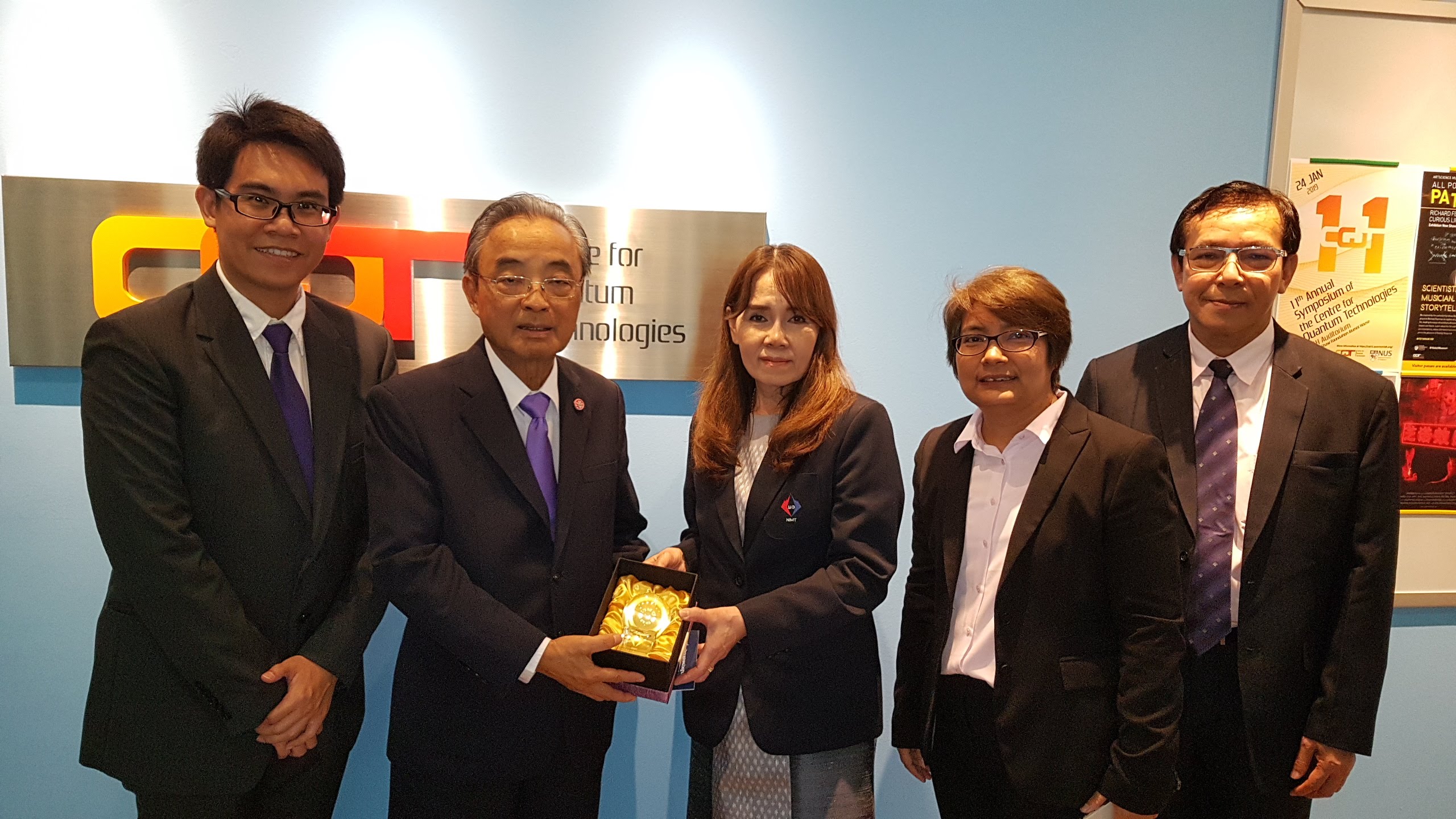 Mrs. Ajchara Charoensook, NIMT Director, Flg.Off. Uthai Norranim, Assistant Director, Dr. Sivinee Sawatdiaree, Head of Electrical Metrology Department and Dr.Piyaphat Phoonthong, Electrical Metrologist visited the Centre for Quantum Technologies, National University of Singapore on 20 January 2019 to sign a Memorandum of Understanding (MoU) during the visit to promote joint research.