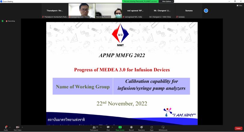 In addition, Dr. Theerarak Chinarak from Mechanical Metrology Department of NIMT also gives a report on “MEDEA 3.0: Metrology – Enabling Developing Economies in Asia Calibration capability for infusion/syringe pump analyzers”.
