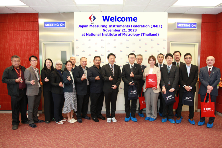 Pol.Lt.Gen. Pornchai Suteerakune, Director, Mr. Anusorn Tonmueanwai, Deputy Director, Dr. Charun Yafa, Assistant Director and NIMT executives warmly welcomed the delegates from the Japan Measuring Instruments Federation (JMIF) to visit NIMT for the discussion on metrology system in Thailand and Japan, future cooperation and other issues of mutual interest. For this visiting, NIMT arranged laboratory tour to mass and flow, length and wavelength standard laboratories and to the customer service section. It was held at NIMT’s Phadung Matra building, Pathumthani province on 21 November 2023.
