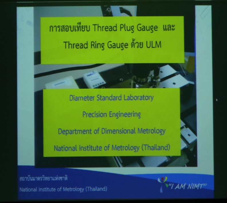 Training Division, Corporation and Partnership Development Group arranged a training on the topic “Thread Ring Gauge and Thread Plug Gauge Calibration” that was lectured to the interested public, private and industrial sector participants by precision engineering metrologists Mr.Yodying Muakngam and Ms.Witchuda Chitkosol from Dimensional Metrology Department.